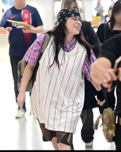 به گزارش روبرونیوز ، استایل فرودگاهی بیلی شامل یک رکابی ورزشی سفید و اورسایز بود که با یک بلیز چهارخانه زیر آن ست شده بود. اما این استایل به همین جا ختم نمی شود. بیلی این بالاتنه را با یک شلوارک قهوه ای رنگ ورزشی پوشیده بود و به عنوان اکسسوری از سربند ماندانا و کوله پشتی گوچی استفاده کرده بود.